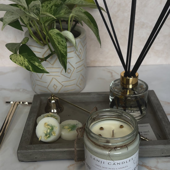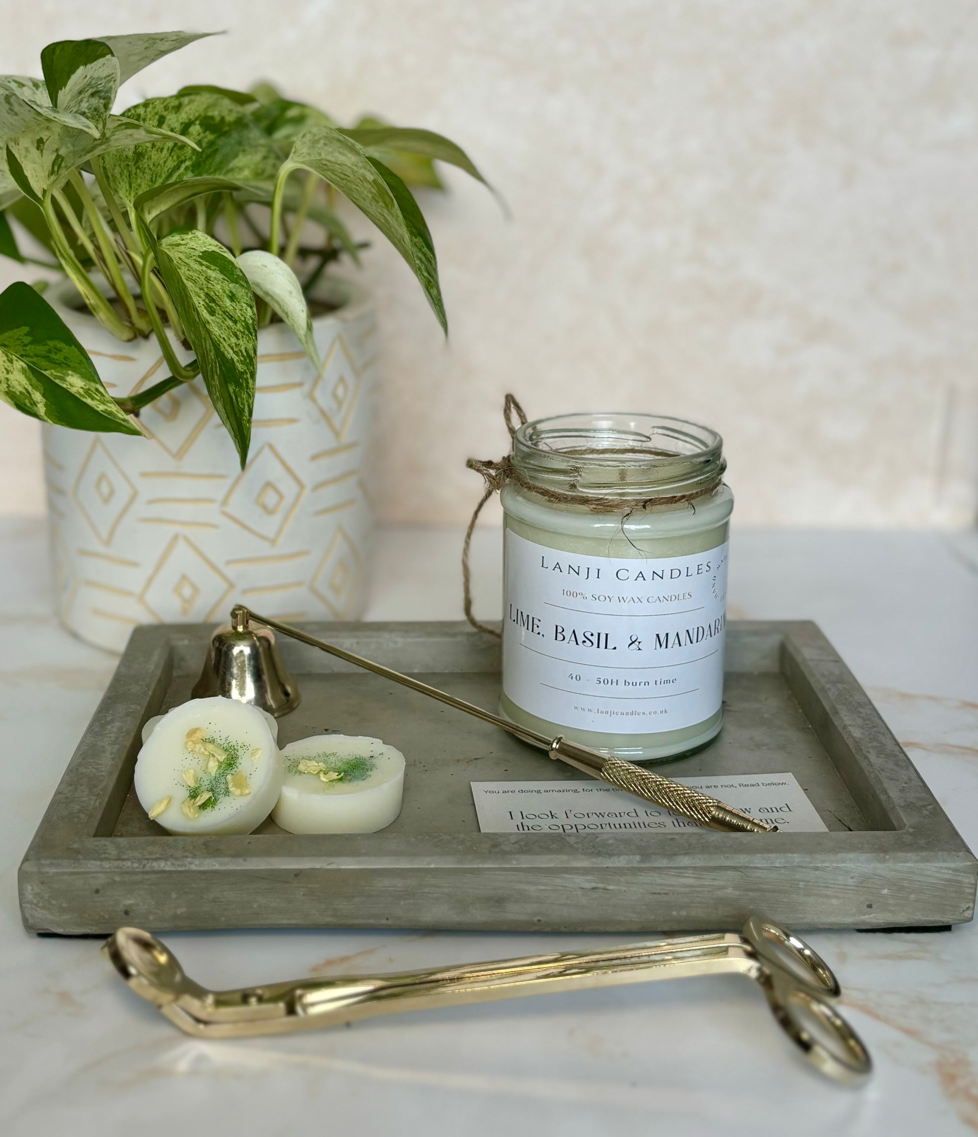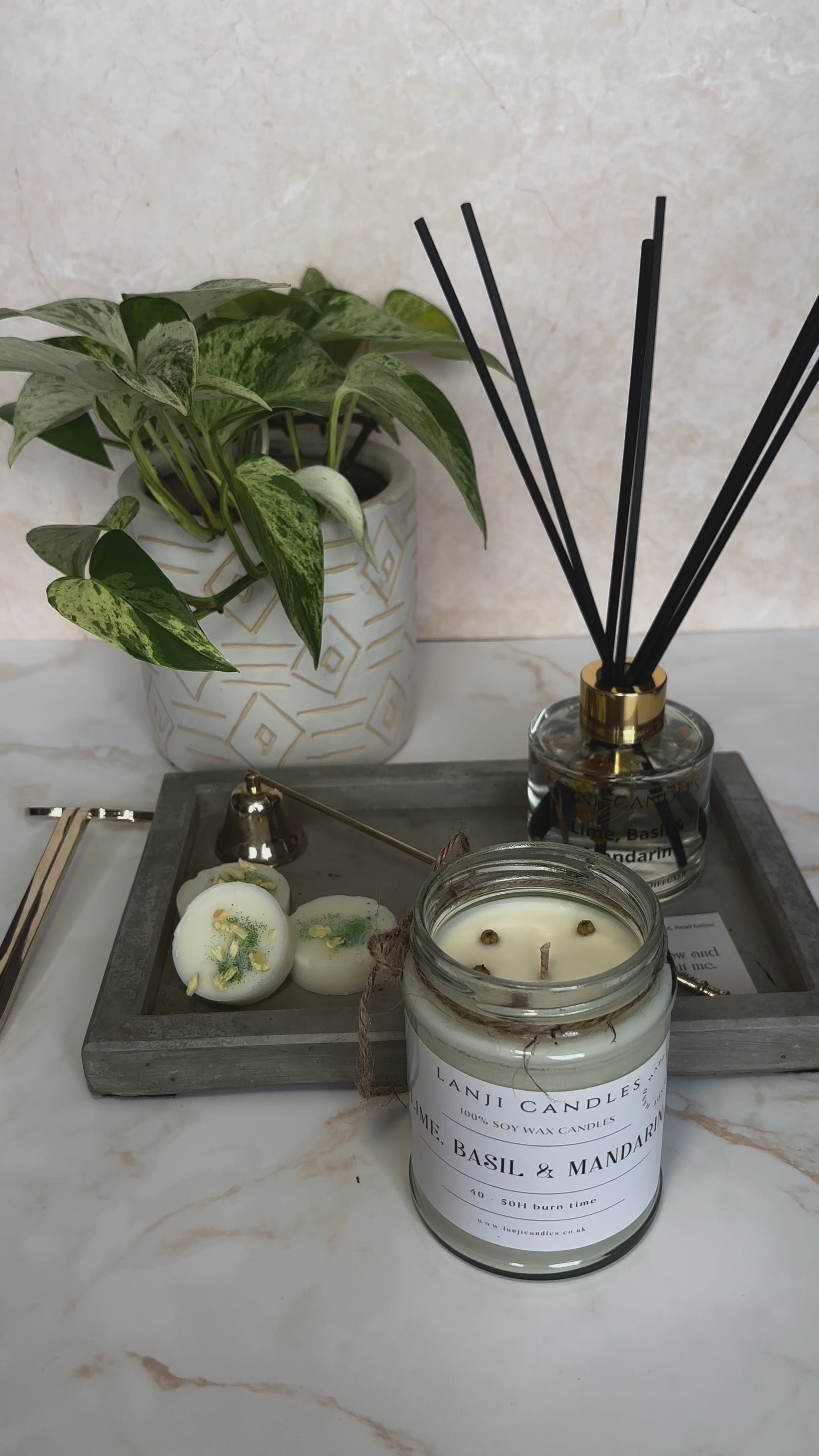 Introducing our refreshing and invigorating scent for Spring 2024: Lime, Basil & Mandarin. Inspired by the vibrant energy and zest of the season, this captivating fragrance is sure to uplift your spirits and infuse your space with a sense of renewed vitality.